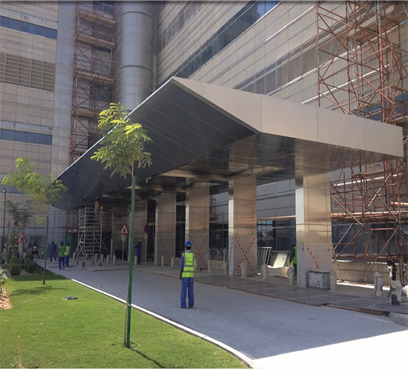 • Product : SHELL WALL CLADDING: EPIC contract for double curved shell walls of the main atria of the hospitals, total surface area 15,000 m2. Shell Wall Cladding Consist of “Zepp” Panel System (Unitized) with Aluminium Frame & Terracotta Tiles Cladding. ENTRANCE CAPOPY: Entrance Canopies - Consist of 100 tons of steel structure & 5000 m2 of Stainless steel Cladding & 2000 m2 of Roof Aluminium Composite Cladding.