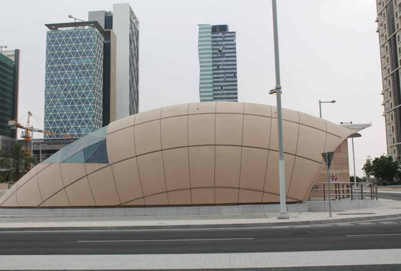 • Product : Entrance Shelter: Complete EPIC Contract, All the Members are 3 Dimensional and Unique Due to it’s Challenging Shape & Design. It Includes the Steel Structure, Standing Seam Roofing System, GRC Cladding, Skylights, Aluminium Perforated Ceiling and Curtain Wall Facade & Automatic Sliding Doors (QTY. Entrance shelter : 15 No's)